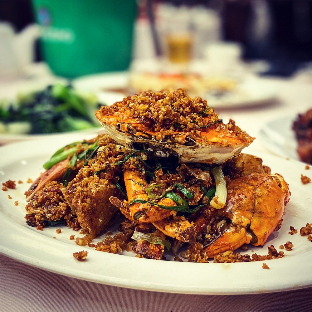 香港名物のSpicy Crabは、ピリッとした香辛料のフレークがたっぷり降り掛かったカニ料理です